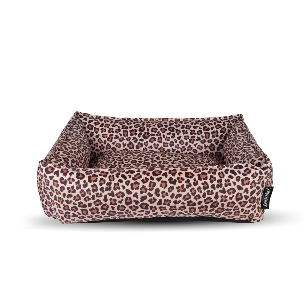 De Lex & Max hondenmand Nairobi is een prachtige mand met stevige opstaande wanden. De wanden zijn gevuld met schuim granulaat zodat jouw hond er heerlijk tegenaan kan liggen of zijn kop er op kan laten rusten zonder dat het inzakt. Door gebruik te maken van een panterprint op fluweelzachte stof is deze mand een hippe eyecatcher in ieder huis.